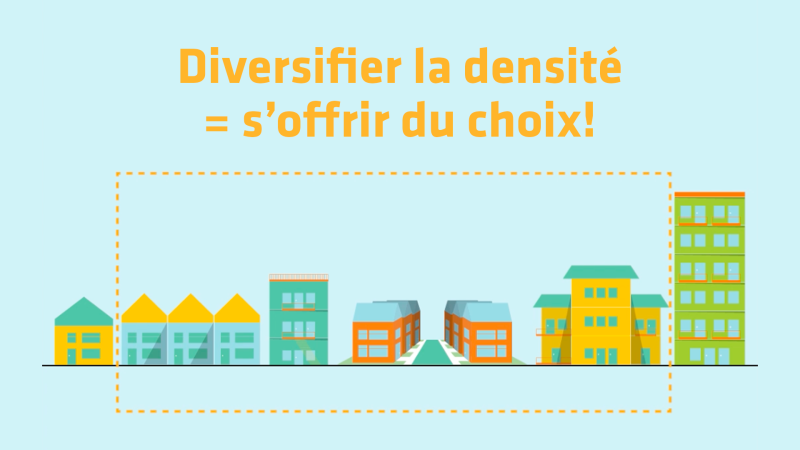 En réalité, la densification ne passe pas que par la construction d’immeubles de grande hauteur. Ces derniers ont un rôle à jouer pour maximiser l’offre en habitation dans certains secteurs stratégiques, mais partout ailleurs, on gagne aussi à explorer les diverses formes de la densité: plex, maisons en rangée, sur cour et immeubles multilogements sont autant d’avenues pour combler des vides dans l’offre résidentielle. Pour que chaque personne, selon ses besoins et moyens, y trouve son compte.