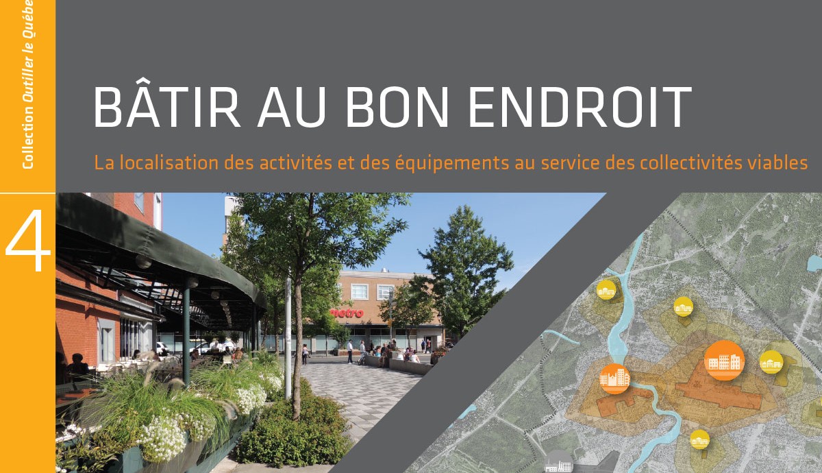 Bâtir au bon endroit repose sur les enseignements de projets pilotes, menés auprès d’organisations impliquées à divers titres dans les décisions de localisation. La publication s’adresse à toutes les municipalités locales, MRC et communautés métropolitaines du Québec, qui, quel que soit leur contexte urbain et régional, ont toutes intérêt à prendre le contrôle de leur urbanisation en accordant une plus grande importance à la localisation des activités sur leur territoire.