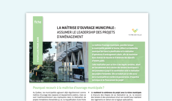 La maîtrise d’ouvrage municipale, possible lorsque la municipalité possède le foncier, réfère à un leadership municipal fort dans la planification et la réalisation d’opérations d’aménagement urbain, afin de maximiser leurs chances de réussite et d’......