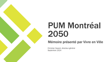Alors que les consultations sont en cours à l’OCPM, Vivre en Ville tient à saluer la proposition de Plan d’urbanisme et de mobilité (PUM) élaboré par la Ville de Montréal. Pour atteindre la vision inspirante que porte ce document, il apparaît nécess...