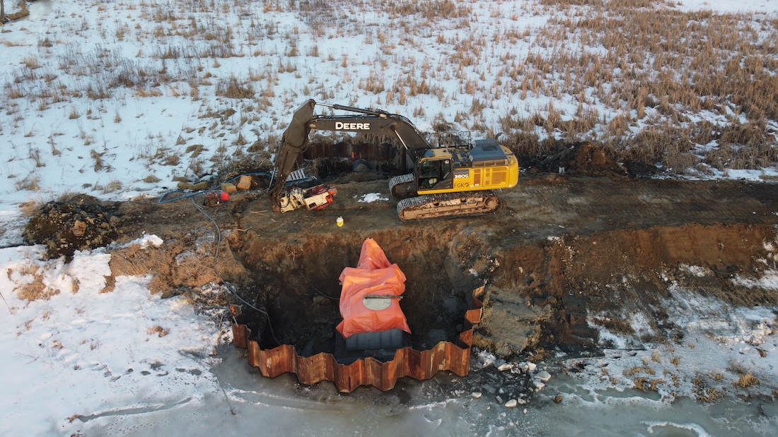 Entre 2022 et 2023, des travaux de mise à niveau ont été entrepris afin de répondre à plusieurs enjeux environnementaux et techniques. En effet, une structure de contrôle du niveau d’eau avait été obstruée par l’activité des castors, tandis qu’une digue avait subi d’importants dommages. Ces détériorations, combinées aux fortes précipitations du printemps 2017, ont provoqué la rupture complète de la digue, entraînant le drainage total du marais.