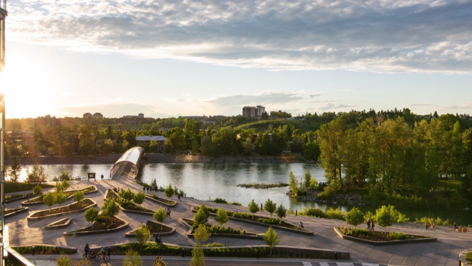 Afin de protéger son centre-ville des inondations de la rivière Bow, la Ville de Calgary a réaménagé ses berges de manière à ce qu’un ouvrage de protection fasse partie intégrante des espaces publics destinés à rendre possible la marche et le vélo, l’accès à l’eau et l’organisation d’événements rassembleurs. Ces nouveaux aménagements forment un ensemble continu sur un peu plus de quatre kilomètres, le long de quatre quartiers centraux, du Red Peace Bridge jusqu’au Reconciliation Bridge.