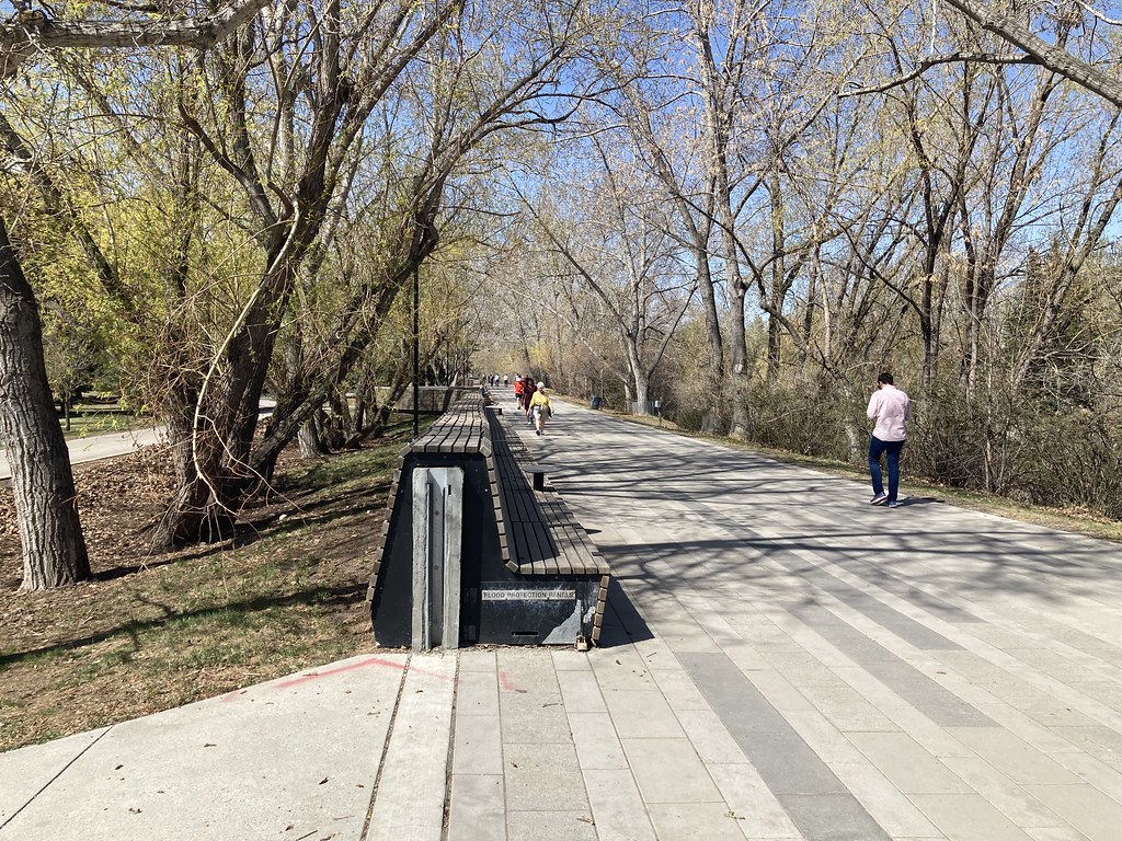 À la suite de cette catastrophe, la Ville de Calgary a adopté son Flood Mitigation and Resilience Plan, dont les mesures de réduction des risques se déclinent à trois échelles : celle du bassin versant en amont de la ville, celle des milieux de vie et celle des propriétés individuelles. L’intégration de la barrière anti-inondations dans le design des espaces publics riverains du centre-ville fait partie de la deuxième catégorie.