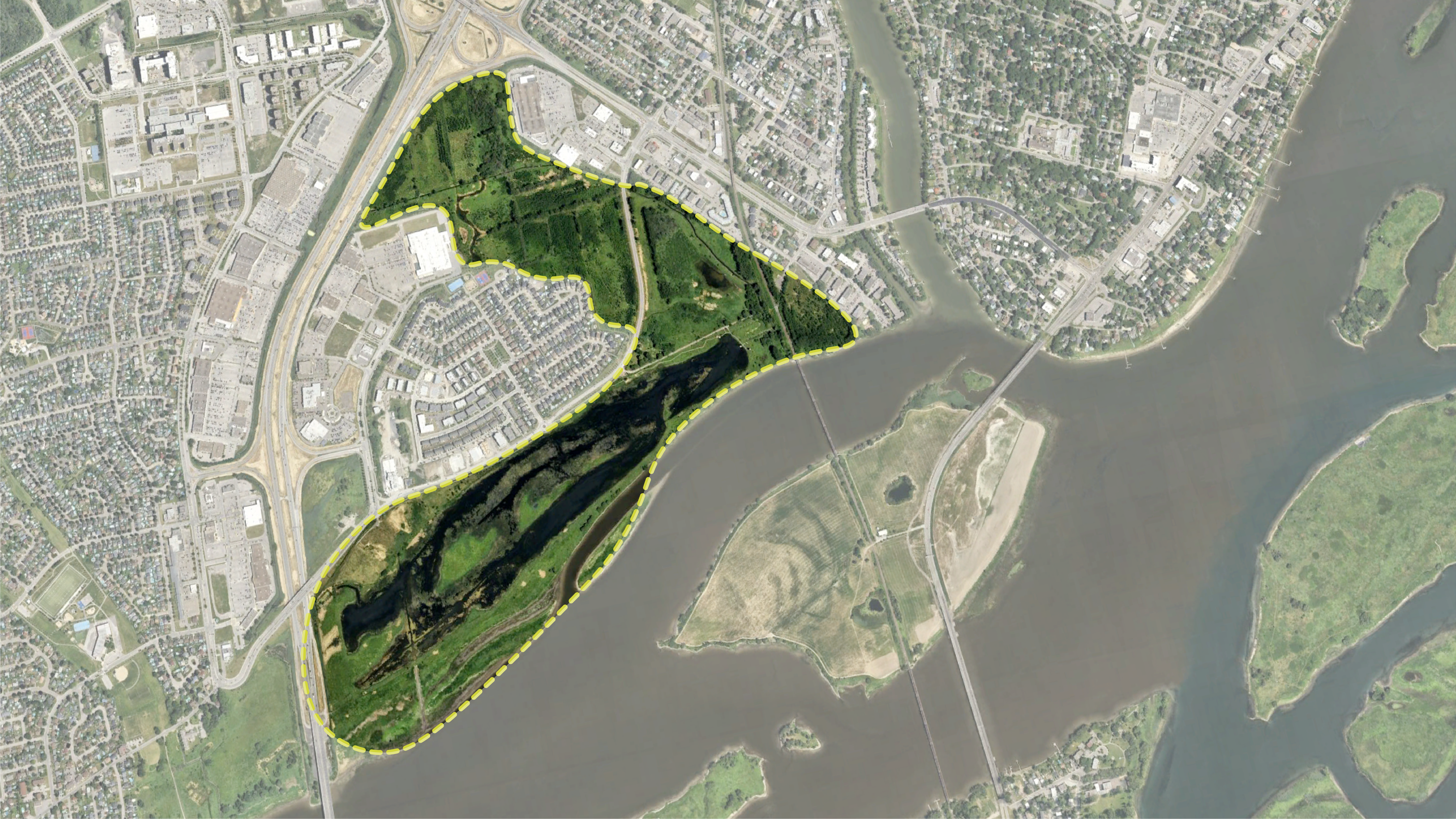 À la confluence de la rivière des Prairies, de la rivière L’Assomption, de la rivière des Mille-Îles et du fleuve Saint-Laurent, le parc de conservation du Ruisseau-de-Feu est dans une zone inondable et est même un des derniers vestiges de la plaine inondable de la couronne nord de Montréal. Les terres agricoles qui s’y trouvaient étaient fortement affectées par les inondations, notamment par les crues printanières qui, une fois que l’eau se retirait, lessivaient les terres et emportaient avec elles de nombreux sédiments, nutriments et pesticides qui se déversaient dans la rivière des Prairies.