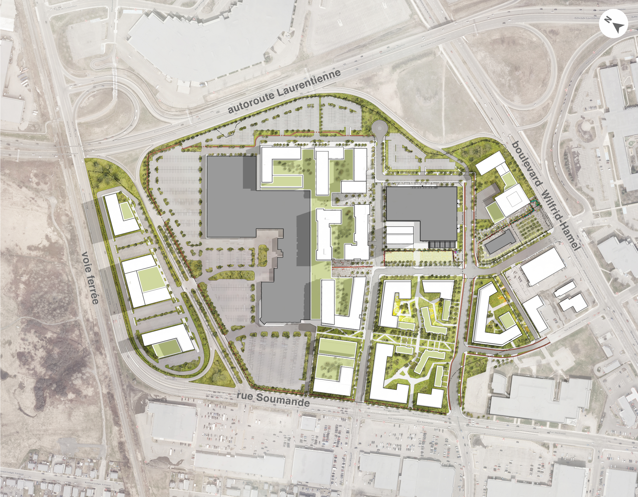 Pour remédier au problème des îlots de chaleur urbains qu'engendrent les toits de bitume et les immenses stationnements asphaltés, 2500 arbres seront plantés, de nouvelles rues seront aménagées, un verger urbain sera créé, les toits des nouveaux immeubles résidentiels seront végétalisés et des mesures de gestion des eaux de pluie seront également mises en place. Le milieu de vie deviendra alors un îlot de fraîcheur, composé à 21% d’espaces verts.