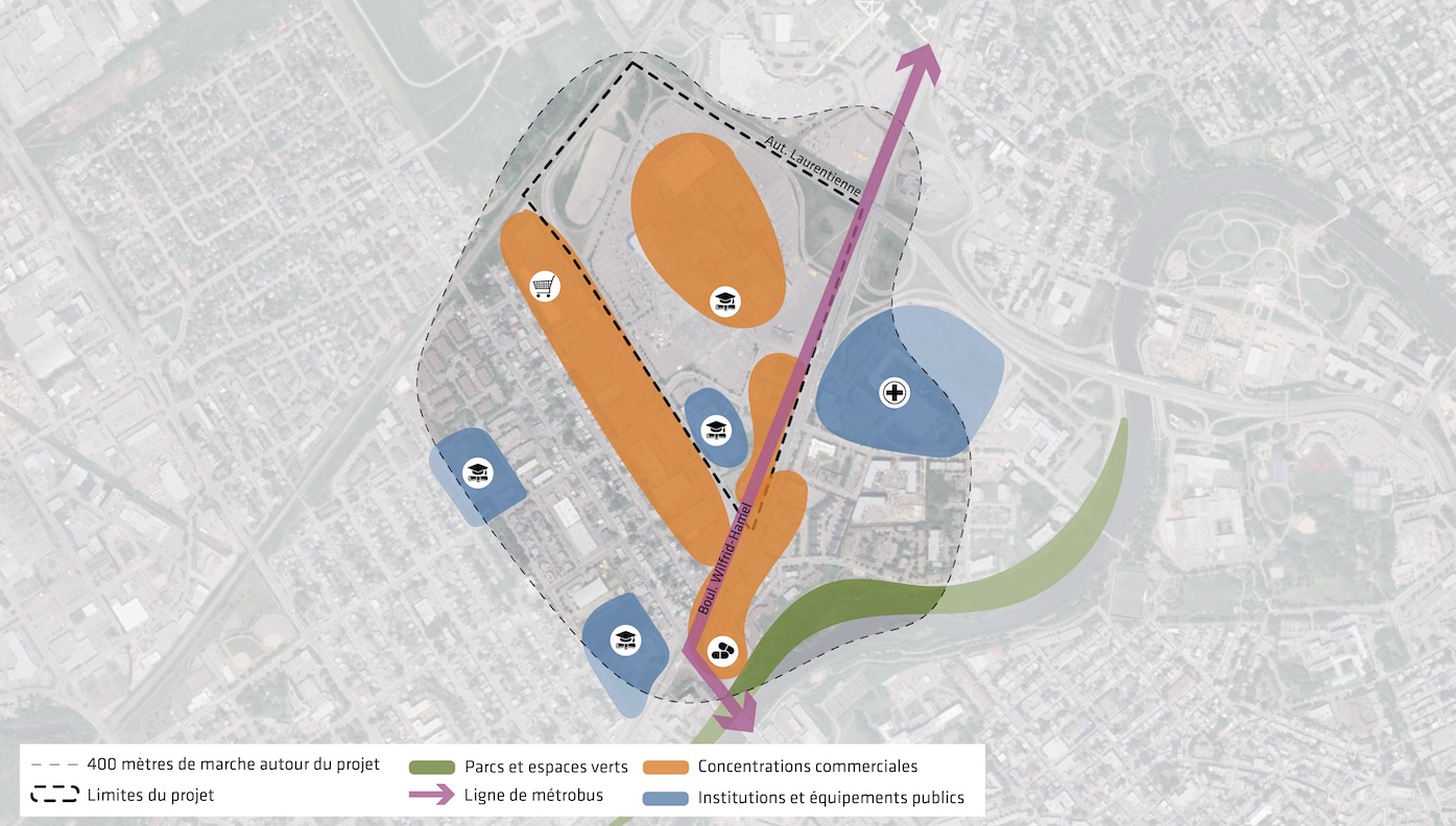 Ce projet de requalification prévoit à terme 3500 logements, une vie commerciale de proximité et un hôtel de 150 chambres. Un cœur institutionnel se développe aussi avec la transformation de l’ancien bâtiment du magasin Sears en campus de l’Université du Québec à Trois-Rivières (UQTR) et l’ajout de de nouveaux bureaux. Le projet prévoit la création d’une place publique totalisant près de 10 000 mètres carrés pouvant notamment accueillir des événements. Le Groupe Trudel espère aussi que des services de proximité, comme des garderies ou des établissements liés à la santé, viendront compléter le nouveau quartier.